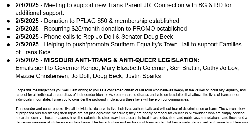 This time around, everything is different. We’ve moved to a community in line with our values. Everyone on our street has our back or at the very least shares our values. I am surrounded by incredible people in every area of my life. My community includes local leaders, fellow members of PFLAG and Transparent, my connections with PROMO Missouri and a highly curated group of much-loved, much-aligned friends. This will fortify me in the years to come.
